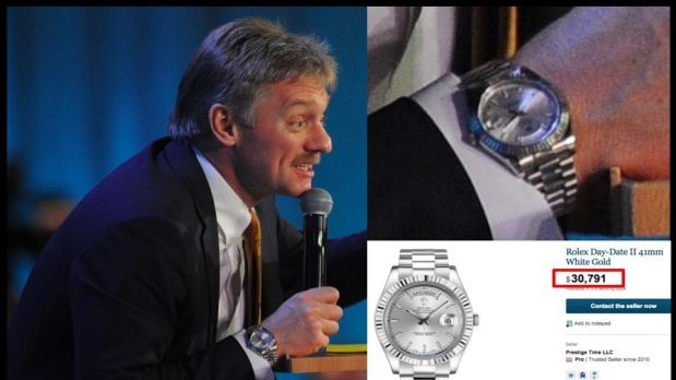 Прес-секретар президента РФ Дмитро Пєсков, на руці якого нещодавно було помічено годинник вартістю 37 мільйонів рублів, виявився власником цілої колекції дорогих годинників. Інформація про колекцію, зібрана Фондом боротьби з корупцією Олексія Навального, була опублікована на офіційному сайті російського опозиціонера.