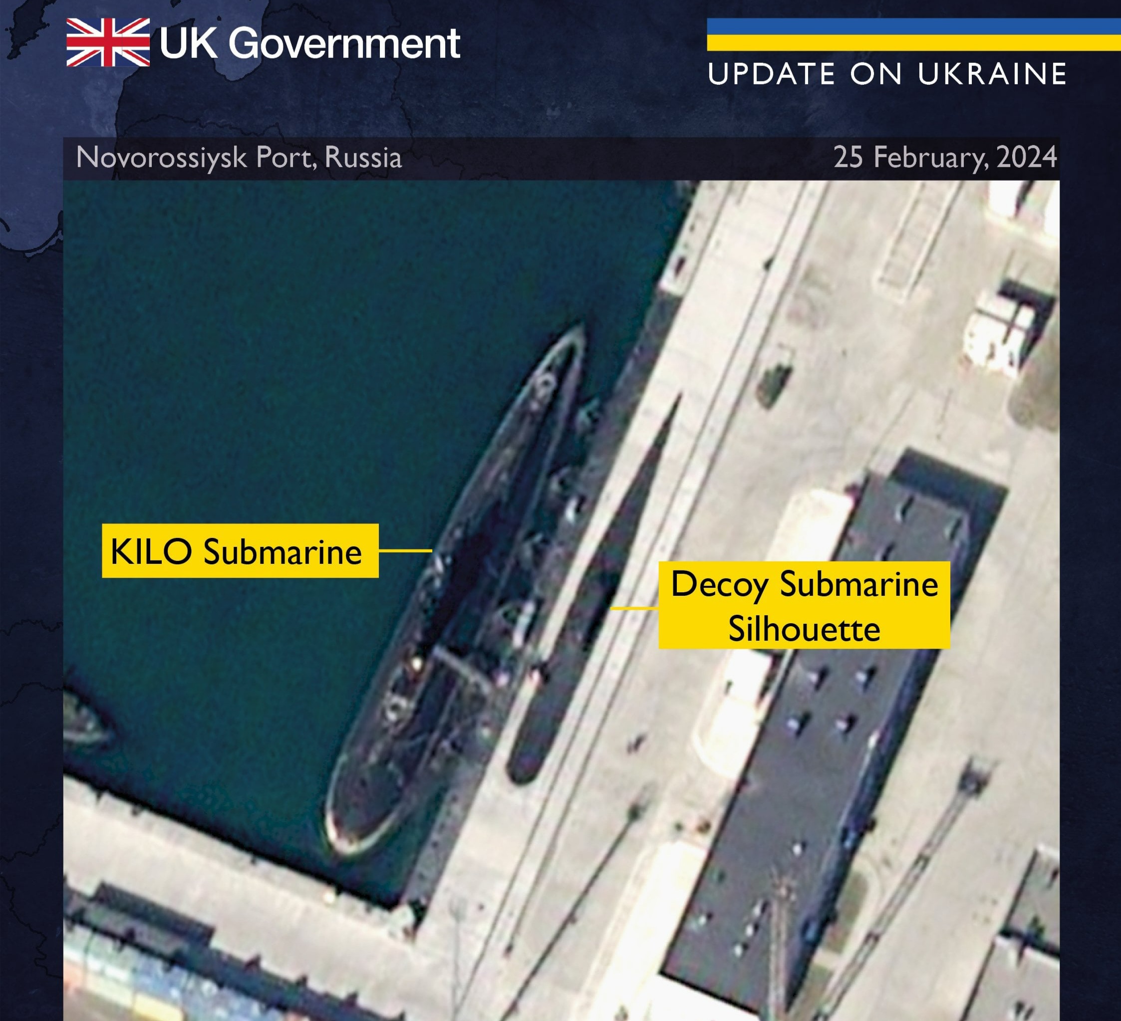 Зазначається, що війська РФ малюють силуети кораблів на причалах, щоб заплутати українських операторів безпілотників. У Міноборони Великої Британії наголосили, що попри спроби маскування, літаки РФ досі залишаються вразливі до звичайного збиття в повітрі, а кораблі вразливі під час операцій у Чорному морі.