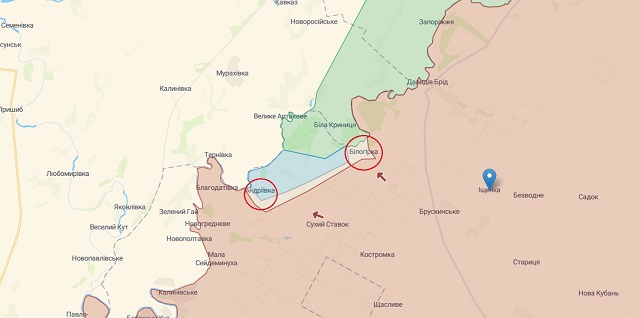 «В черговий раз ворожі сили кількістю до РТГр із залученням резервів, спробували здійснити наступальні дії з напрямку Іщенки на Білогірку. Зазнавши втрат, ретирувалися, – йдеться у повідомленні ОК «Південь». – Надвечір парами штурмовиків та ударних Ка-52 атаковано Андріївку. Втрат не допущено».