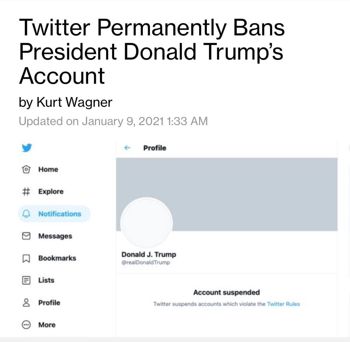 Відзначається, що компанія оголосила про заборону через два дні після того, як Трамп був спочатку заблокований в середу за публікацію серії твітів, які вводили в оману щодо результатів президентських виборів та, імовірно, заохочували бунтівників, які напали на Капітолій США. Один з них містив відеозвернення, в якому Трамп висловлює прихильність до повстанців і називає вибори «сфальсифікованими».