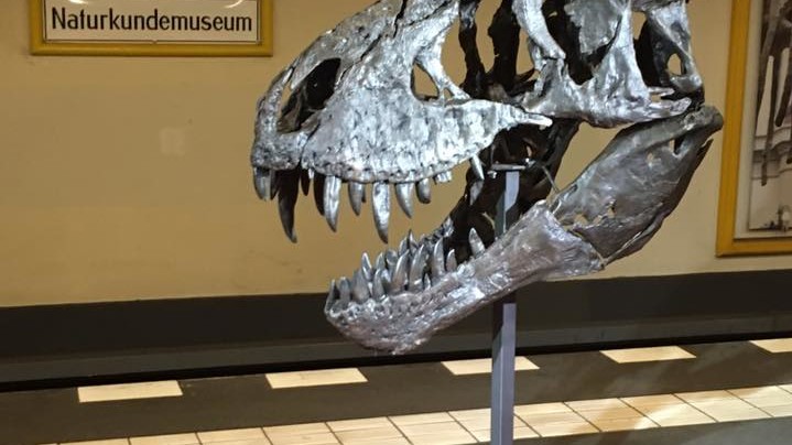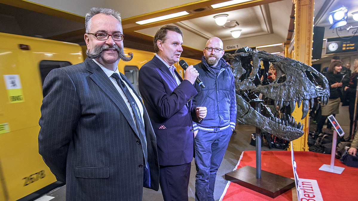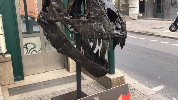 На станції метро Берліна 10 жовтня встановили копію черепа тиранозавра "Трістана Отто" в натуральну величину з Музею природознавства. Потім голова стародавнього ящера відправиться в тур по містах Європи - вже 17 жовтня вона буде встановлена у Варшаві.