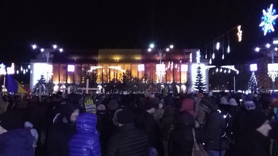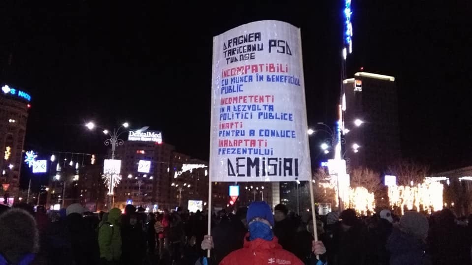 Демонстранти пройшли маршем центральними вулицями столиці до площі Перемоги, де знаходяться будівлі уряду і парламенту. Протестуючі скандували гасла "Гніздо злодіїв і бандитів", і "Врятуємо Румунію разом" біля урядових будівель. Демонстрація почалася близько 18:00 і тривала чотири години.