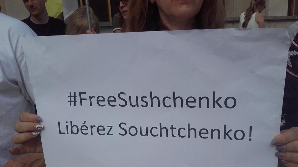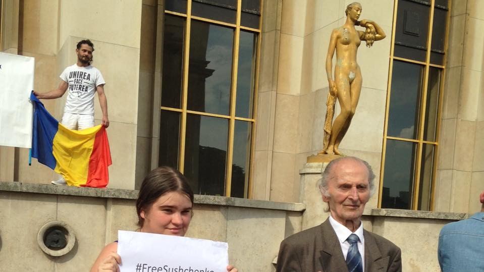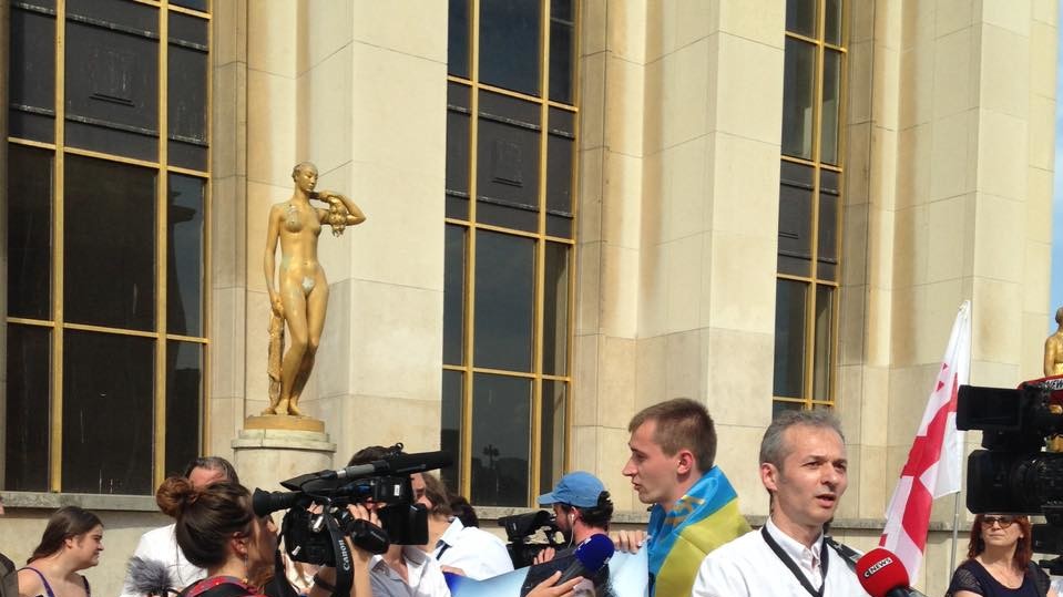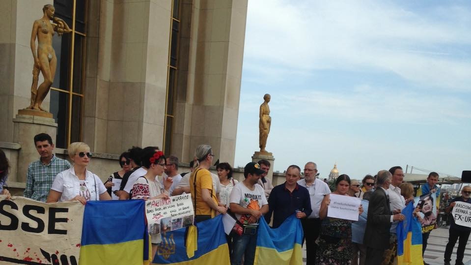 найактивнішими учасниками виявилися українці, що прийшли в центр французької столиці в неділю, 28 травня, з національними прапорами і плакатами з вимогами звільнити журналіста Романа Сущенко – паризького кореспондента агентства "Укрінформ".