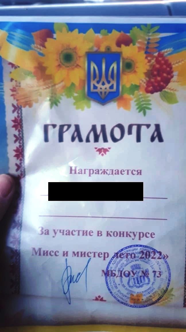 Діти отримали грамоти з українським тризубцем 30 серпня за участь у конкурсі "Міс та містер літо 2022".