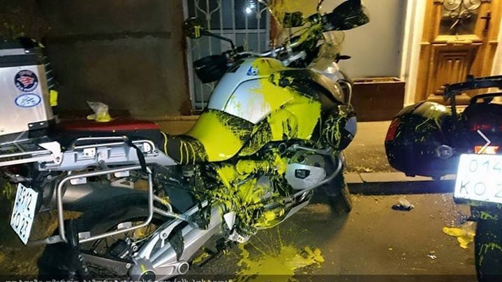 У Тбілісі в ніч на 9 травня невідомі облили кілька мотоциклів російських туристів жовтою і синьою фарбою.