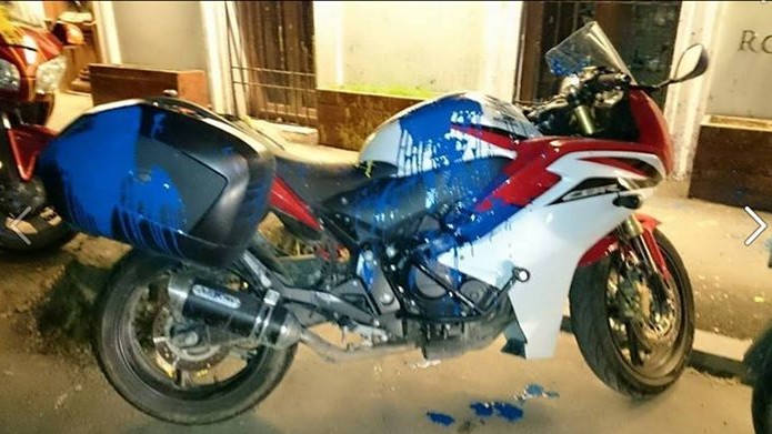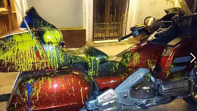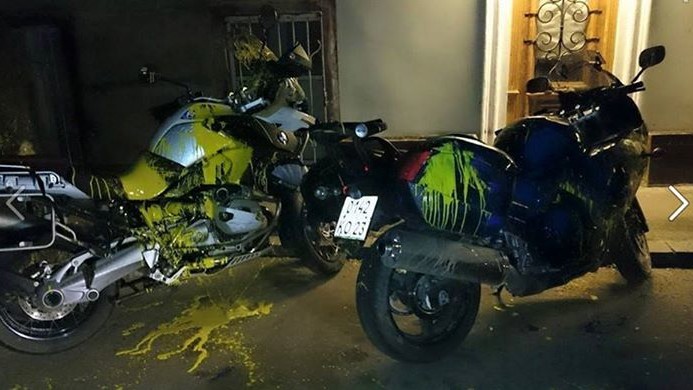 На думку туристів, їх мотоцикли, швидше за все, "пофарбували" хулігани. Фото забруднених фарбою мотоциклів розмістили користувачі соціальних мереж.