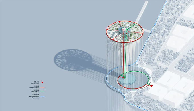 Японсько-французька архітектурна компанія Sou Fujimoto Architects спроектувала вежу, яка складається з 99 «літучих островів», які ширяють на висоті близько 268 метрів над водою. Дизайн будівлі був розроблений в рамках конкурсу Qianhai's New City Center Landmark на будівництво нового пам'ятника в затоці Цяньхай в Шеньчжені. Про це повідомляє MY MODERN MET.
