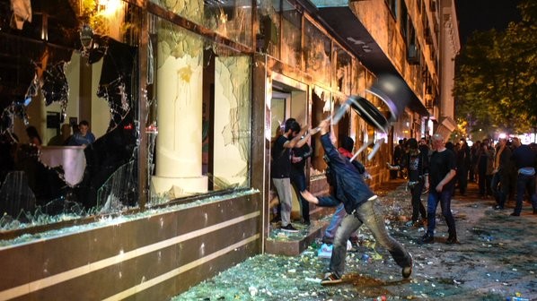Натовп намагався прорватися до штаб-квартири опозиційної партії, однак дорогу їй перегородили співробітники поліції з щитами і кийками. В результаті зіткнень з правоохоронцями є постраждалі, кількість яких не уточнюється. Кілька погромників були затримані.