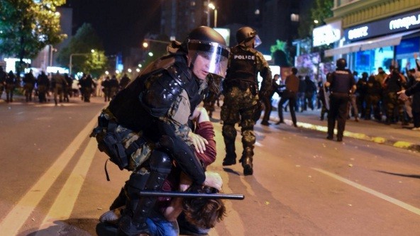Мітингувальники, які намагаються пройти до будівлі парламенту Македонії, вимагають скасування парламентських виборів 5 червня, відставки президента країни та формування нового уряду.