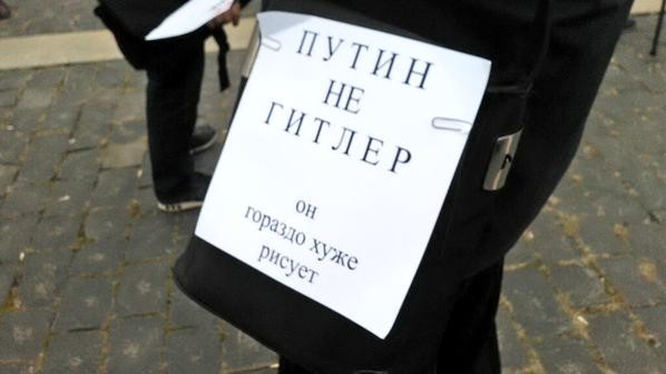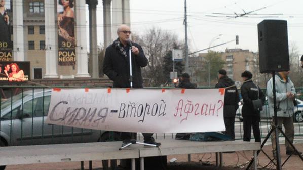 Учасники пікету скандували "Ні війні", на їхніх плакатах були гасла: "Путін - один Сирії і ворог Росії", "Сирія - другий Афган?" і так далі.