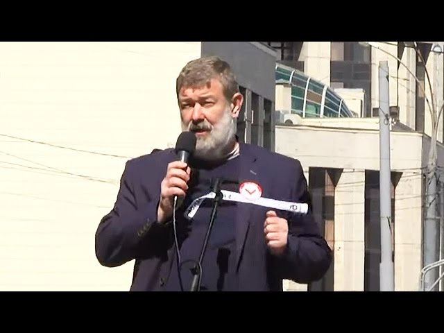 "Я відчуваю, що вина за ту кров, що пролита моєю країною в Україні, лежить і на моїй совісті, як на громадянина Росії, який не зміг цьому запобігти", - сказав Дадін, який прийшов на мітинг із пов'язаним на плечі прапором України.
