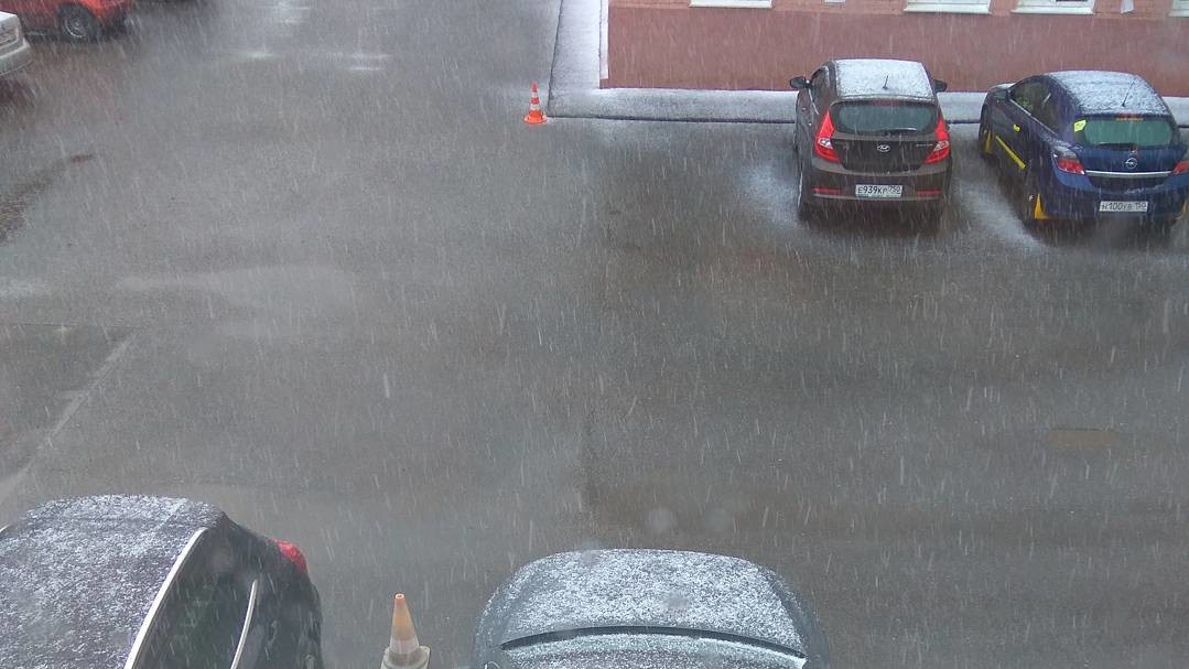 В Москві і області випав сніг. Фотографії і відео природного явища наповнили соцмережі.
