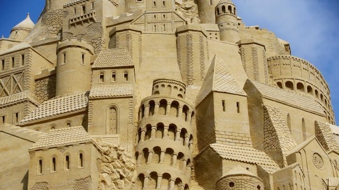 Споруда має висоту 16,68 метрів. На будівництво замку пішло 3500 тонн піску і більше трьох тижнів часу. Інженери і дизайнери з десяти країн світу прикрасили будову елементами архітектури своєї батьківщини.