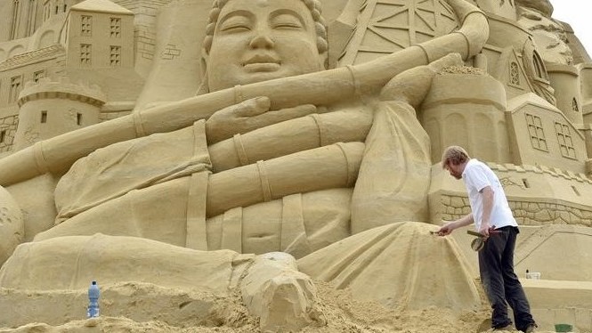 В німецькому місті Дуйсбург звели пісочний замок, який одразу ж був занесений в Книгу рекордів Гіннесса, як рекордсмен серед пляжних скульптур, повідомляє агентство Associated Press.