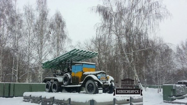 Крім того, в жовто-блакитні кольори пофарбували військову техніку, встановлену в місцевому "Сквері слави". Фотографії були викладені новосибірських групах в соціальних мережах.