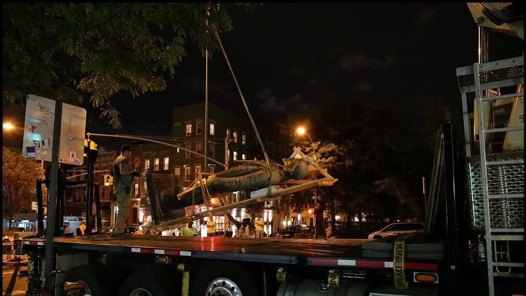 У Нью-Йорку демонтували пам'ятник Леніну. Шестиметрова статуя стояла на даху 13-поверхової будівлі Ред-сквер на Хаустон-стріт в Нижньому Манхеттені.
