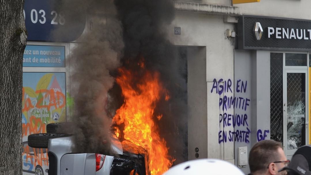 У Парижі поліція заарештувала близько 200 демонстрантів за підпалені автомобілі та розгромлені вітрини магазинів під час щорічних травневих протестів. Саме так закінчився мирний мітинг профспілок проти реформ президента Еммануеля Макрона, повідомляє BBC.
