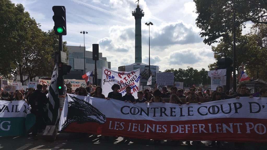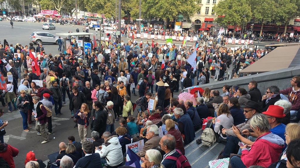 Tens of thousands of French leftists answer a call by firebrand Jean-Luc Melenchon to throng the streets of Paris https://sg.news.yahoo.com/french-left-stages-street-showdown-over-macron-reforms-013803028.html pic.twitter.com/bsMeIHUjs8