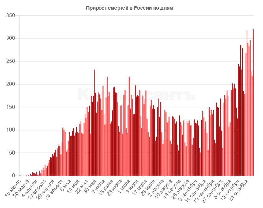 У РФ за 26 жовтня про коронавірусу померли 320 осіб, пише Комерсант.