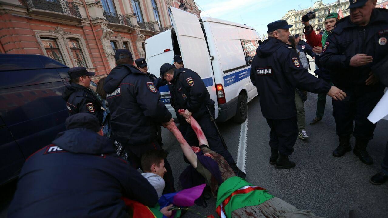 У Санкт-Петербурзі поліція затримала 18 учасників першотравневої демонстрації, які влаштували перформанс на захист ЛГБТ-спільноти Чечні, повідомляє правозахисник Дінар Ідрісов. Затримання проходили в жорсткій формі.