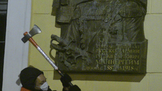 Вранці 10 жовтня в Санкт-Петербурзі група молодих людей намагалася розрубати сокирою меморіальну дошку на честь Карла Густава Маннергейма - полководця і екс-президента Фінляндії.