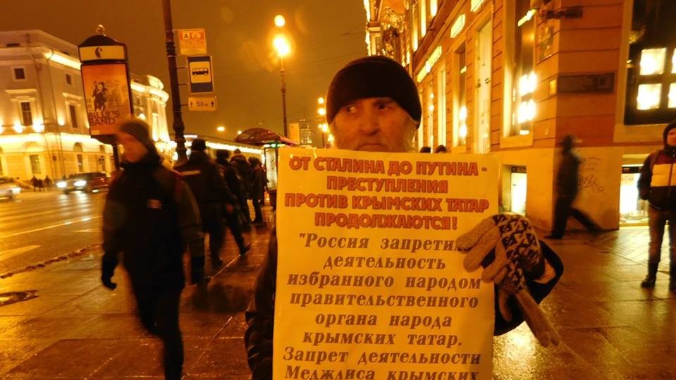 Організатори одиночних пікетів в Санкт-Петербурзі на підтримку кримських татар оголосили, що акція під назвою "Стратегія 18" буде тривати безстроково. А пікети будуть проходити щомісячно.