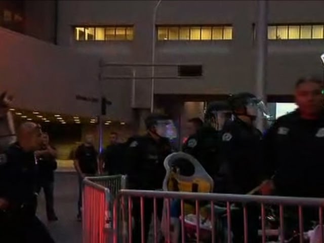 Демонстранти закидали поліцейських палаючими футболками і пляшками. Кілька офіцерів поліції отримали травми через каміння, кинуте в них із натовпу.