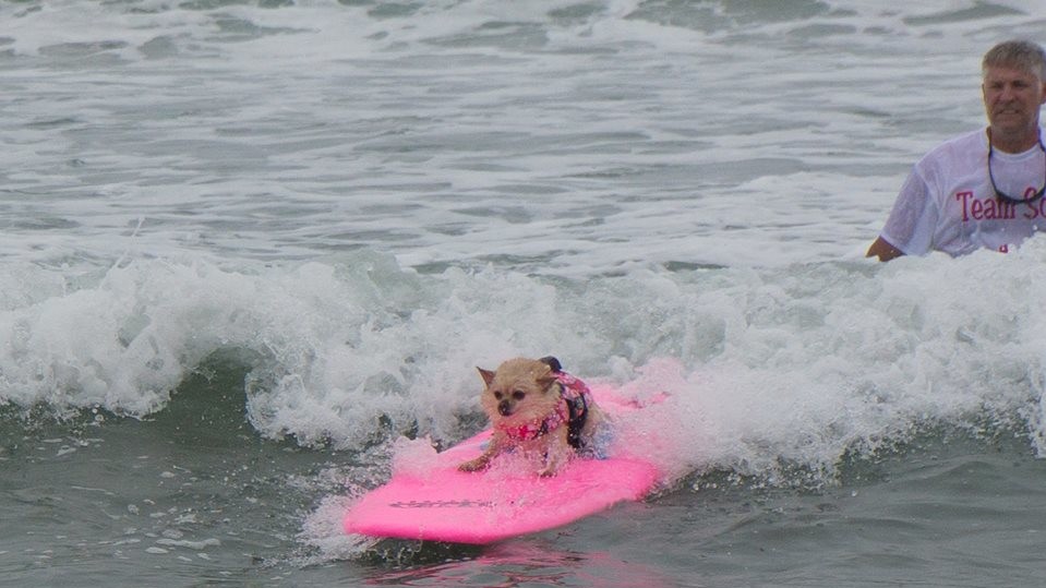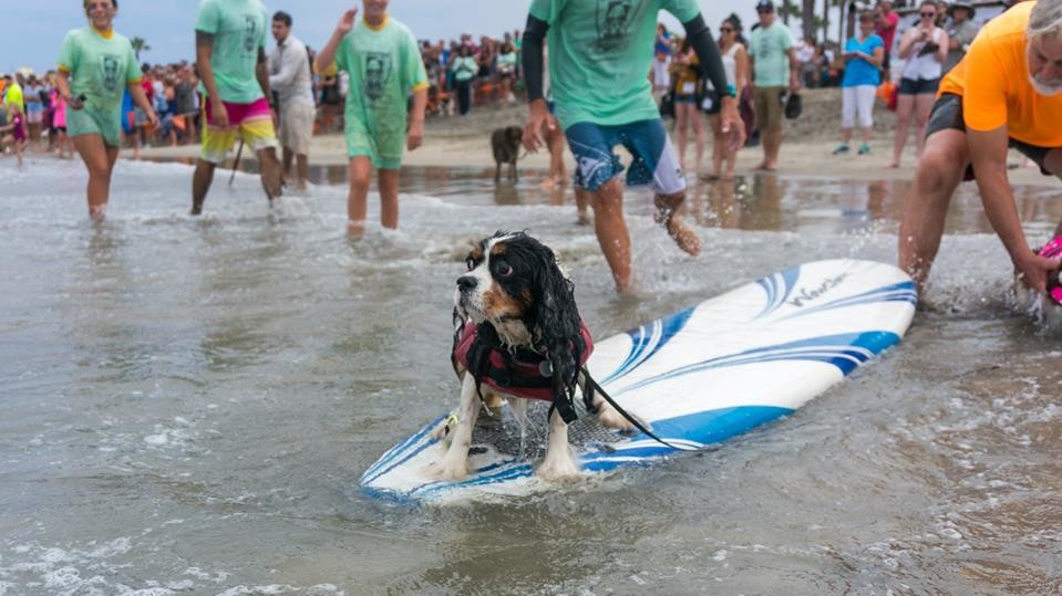 На Каліфорнійському узбережжі 3 пройшли змагання з собачого серфінгу. Десятки собак покаталися на дошках, продемонструвавши своє вміння хоробро триматися на хвилях. Пляж Імперіал-Біч був заповнений учасниками змагань та глядачами.