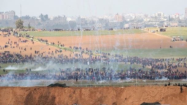 Наголошується, що десятки тисяч палестинців зібралися на кордоні сектора з Ізраїлем, щоб провести антиокупаційний Великий марш повернення. Організатори акції, серед яких правлячий у секторі Газа рух ХАМАС, розгорнули приблизно в кілометрі від Ізраїлю п'ять наметових містечок, куди з ранку стікалися натовпи палестинців.