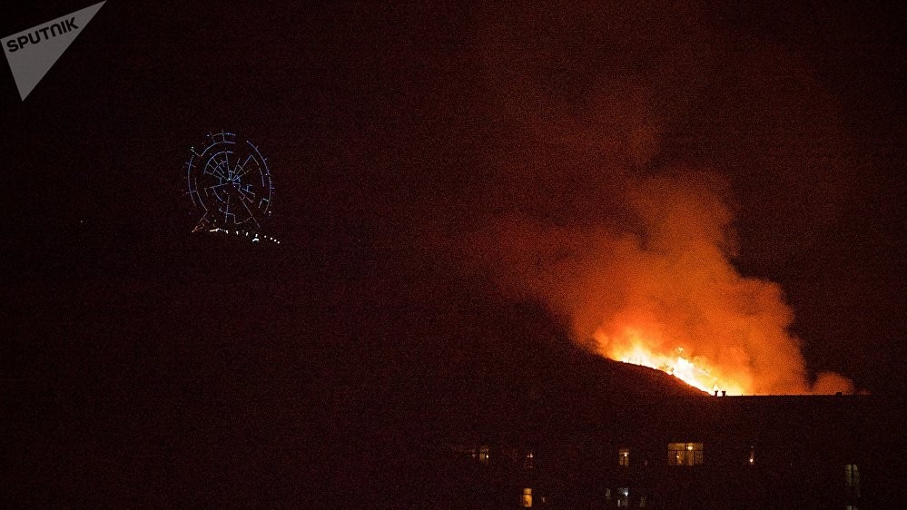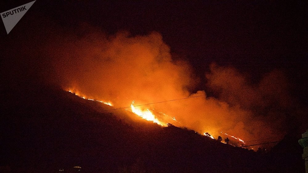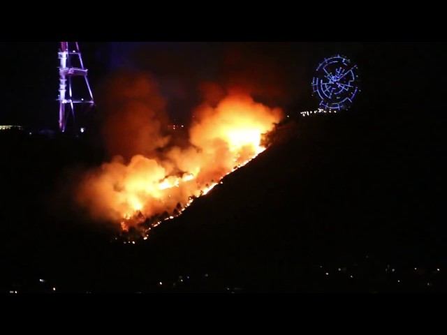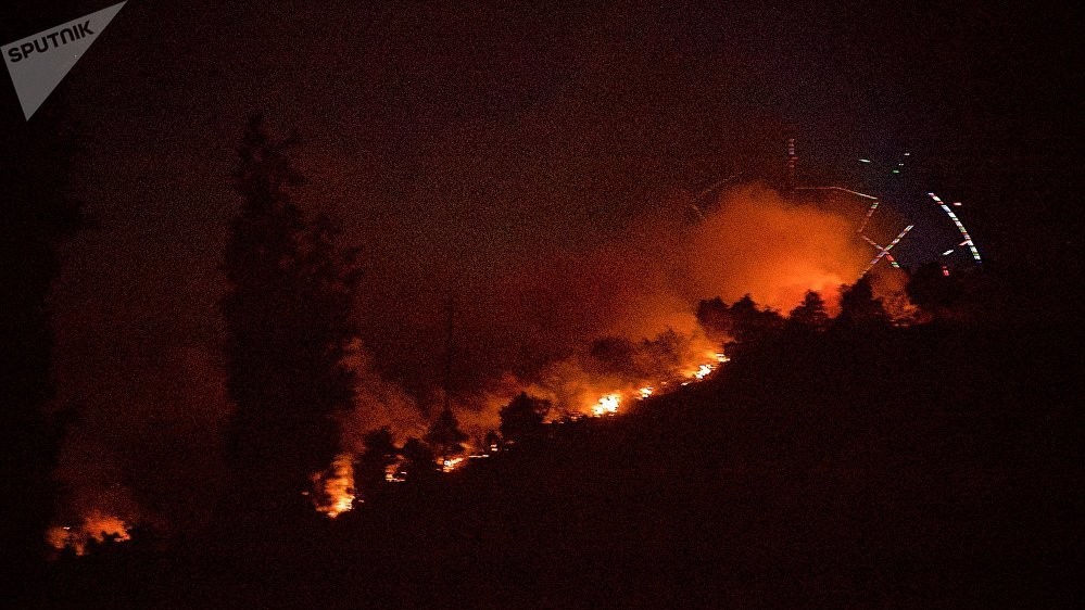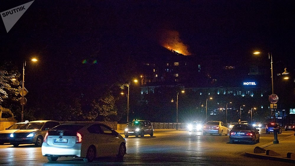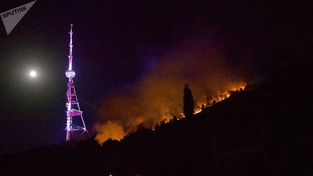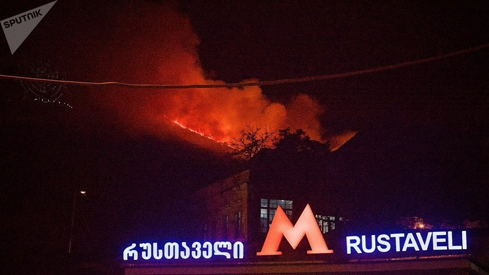 У столиці Грузії вночі сталася велика лісова пожежа на горі Мтацмінда, що є символом Тбілісі і улюбленим місцем відпочинку городян. Вогонь спалахнув відразу в декількох місцях неподалік від парку атракціонів і поширився на велику площу лісового масиву. На тлі нічного неба яскраві язики полум'я було видно з будь-якої точки міста.