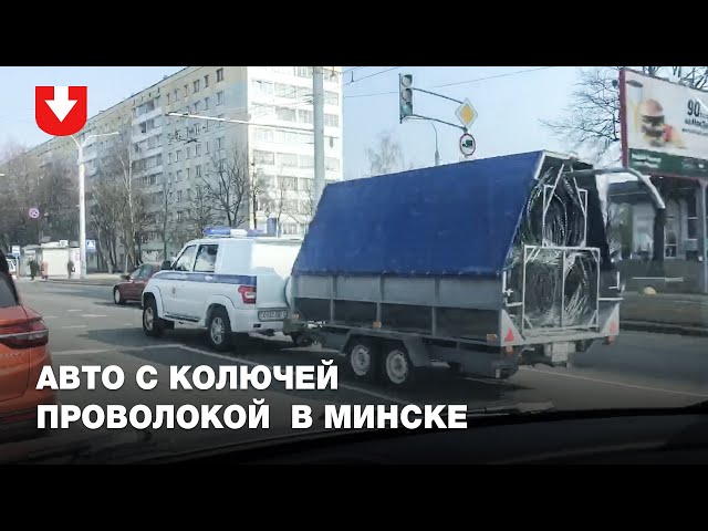 На проспекті Пушкіна в столиці Білорусі помітили машину з рулонами колючого дроту, який можна оперативно розгортати на вулицях.