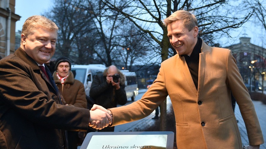 У Вільнюсі біля пам'ятника молодому Тарасу Шевченку відкрили "Український сквер". У церемонії взяв участь президент України Петро Порошенко.