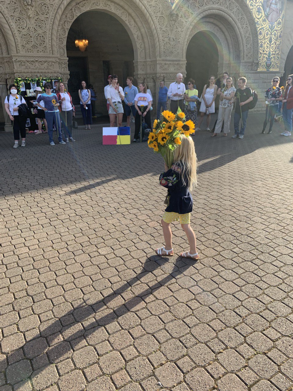На минулому тижні українські студенти у дванадцяти американських університетах ініціювали траурні зібрання. Студенти, професори, персонал університетів та небайдужі місцеві жителі зібралися для вшанування українців, вбитих рашистськими загарбниками. На зібраннях виступали небайдужі з короткими промовами, грали та співали українські пісні, сум і біль яких був всім зрозумілий без перекладу. Читалися народжені війною вірші, в який йшлося про трагедії Бучі, Ірпеня, Маріуполя та інших міст, найважче поранених рашистами. У Стенфорді зібрання відвідало більше 150 людей і кожен з них мав змогу покласти по соняшнику до символічного меморіалу загиблих.