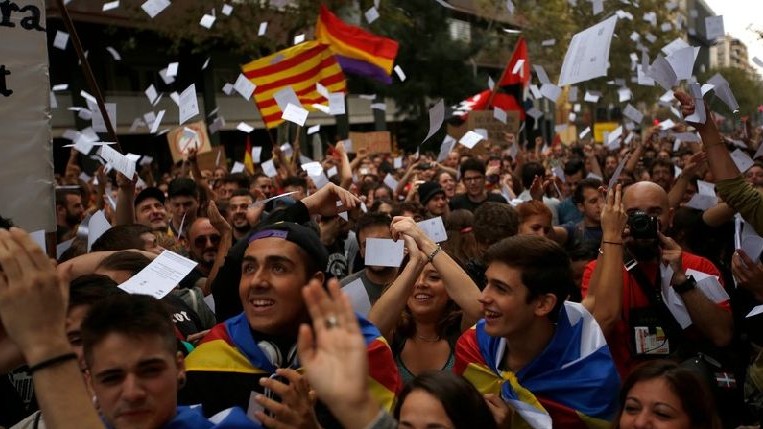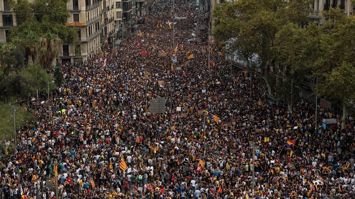 WATCH: Thousands take to the streets in Barcelona to protest police crackdown on independence vote. MORE: https://t.co/d3MVOwYBMB pic.twitter.com/LI5NA79U1v