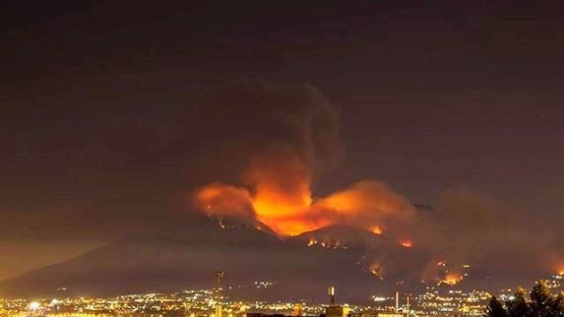 Як повідомляє інформаційне агентство The Local, десятки пожежних продовжують боротися з лісовими пожежами на схилах гори, які підпалив вулкан.
