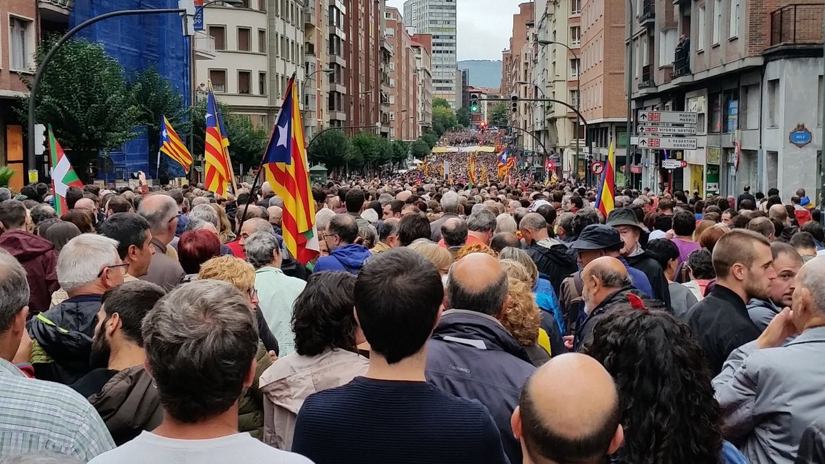 В іспанській Країні Басків 1 жовтня більше тисячі жителів міст Віторія, Більбао і Сан-Себастьян вийшли на демонстрації на підтримку референдуму в Каталонії, повідомляє іспанське видання La Vanguardia.