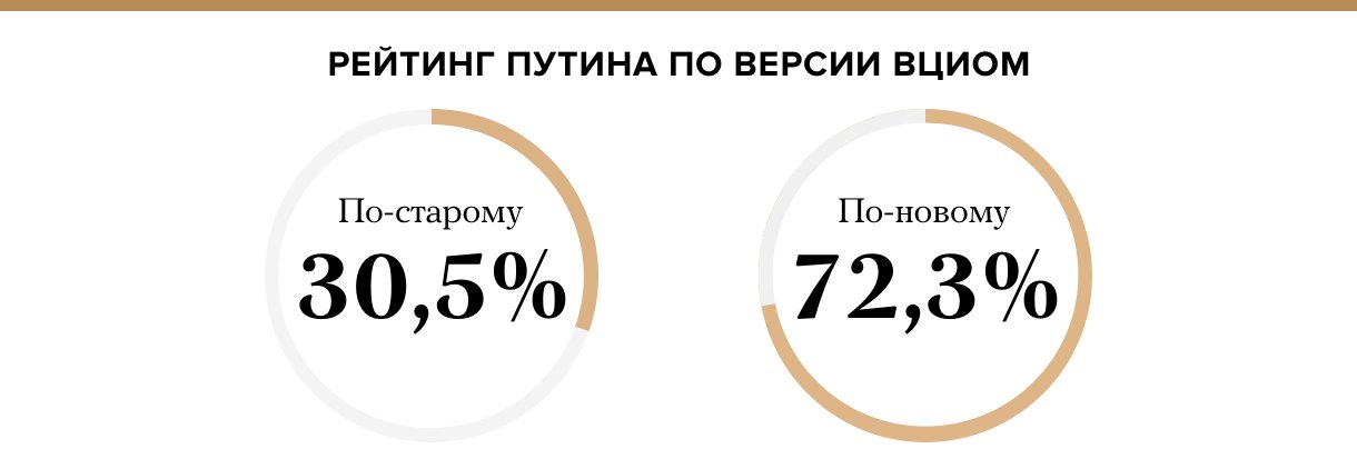 Раніше соціологи ставили росіянам відкрите запитання "Кому з політиків ви довіряєте?" Тепер додали закрите питання "Ви довіряєте або не довіряєте Володимиру Путіну?" Рейтинг довіри президенту РФ, розрахований за старою та новою методикою, радикально відрізняється.