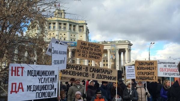 Крім того, протестувальники вимагають від влади влаштувати "люстрацію" всім керівникам департаменту охорони здоров'я Москви, які брали участь в реорганізації охорони здоров'я.
