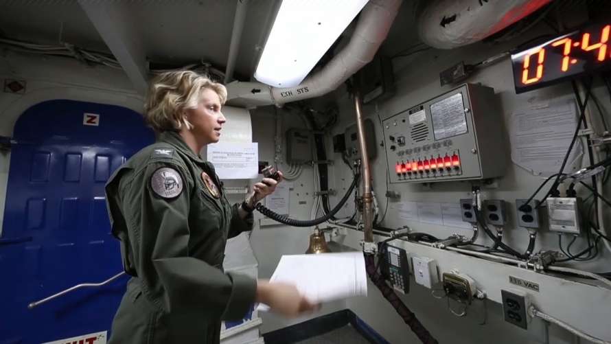 Бауерншмідт за фахом пілот вертольота, раніше служила виконавчим офіцером цього авіаносця.