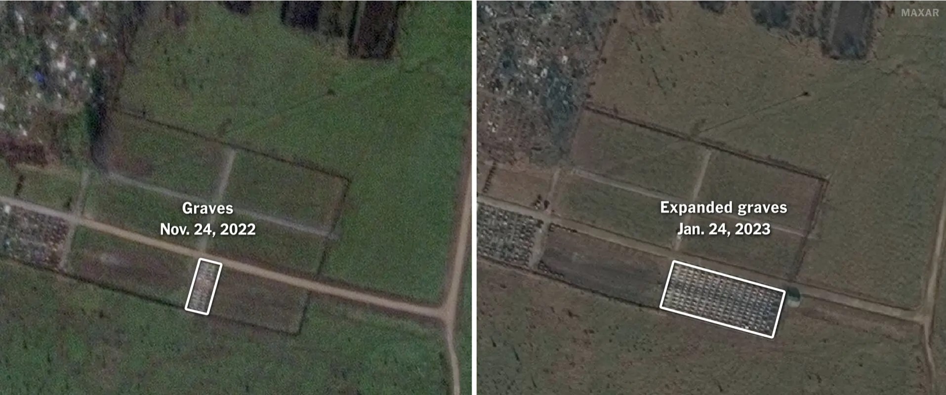 Так, супутниковий знімок, зроблений 24 січня, показує близько 170 ділянок для поховання в районі кладовища, де хоронять найманців Вагнера. Видання зазначає, що ця кількість зросла майже в сім разів порівняно із супутниковими знімками у листопаді.