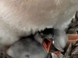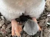 За словами біологині, пташеня мало з’явитися найближчим часом, і прогноз справдився. Невдовзі у гнізді стало вже двоє малюків, що відповідає асинхронному вилупленню субантарктичних пінгвінів. Спершу пташенята вкриті сірим пухом, який поступово густішає та темнішає, а приблизно через місяць починається линяння після якого з’являється пір’я.