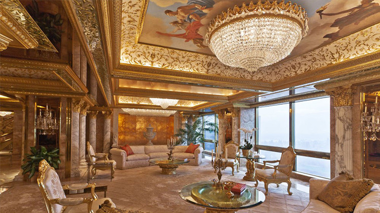У Мережі опубліковані фотографії нью-йоркських апартаментів Дональда Трампа "Trump Tower" на 66-му поверсі. З вікон апартаментів вартістю близько 100 мільйонів доларів відкривається вид на Центральний парк. В інтер'єрі переважає золото і мармур.