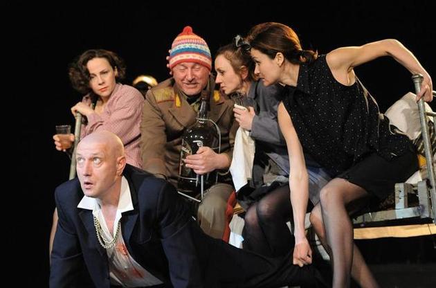 3 год. 40 хв.), ніби з розрахунком на її подальше особливо важливе життя. Ця вистава - в'їдлива, публіцистична і, звісно, багато в чому пророча. Чорна комедія як жанр обігрується режисером - затято, завзято. І акторський склад Молодого навіть 99-й раз грає "як уперше": Станіслав Боклан, Вікторія Авдєєнко, Ірма Вітовська, Олена Узлюк, Наталія Васько, Римма Зюбіна, Станіслав Бжезінський, Олександр Галафутник, Володимир Чигляєв, Кирило Бінн, Ігор Портянко, Ярослав Чорненький, інші.