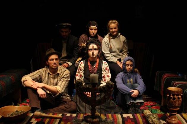 Ну, а те, що під носом у глядача (побут і норов у сільській хаті) вирішено засобами, скажімо так, домашнього театру. Подібно до того, як діти граються ляльками, посудом: кілька ослонів окреслюють кордони хати, з дитячою старанністю на них накинуто ліжники. Посуд, свічник - також з арсеналу домашнього театру.
