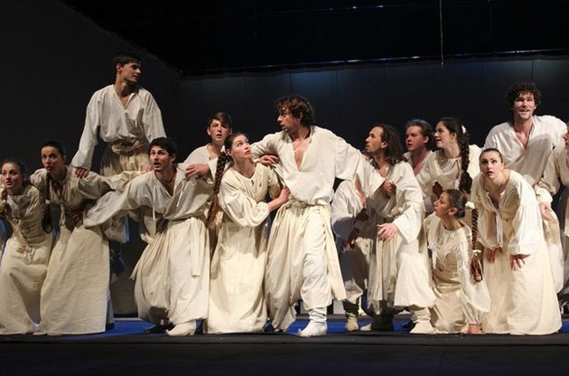 Звісно, не всерйоз, а умовно інколи розділяю теперішні наші режисерські пошуки на дві домінуючі гілки. Це - режисура "інституту" і режисура "інстинкту". Часто режисура "інституту" - копіювально-бездушна, антикреативна, інколи - і бездарна. Режисуру "інстинкту", в окремих випадках, представляють митці, котрі пройшли непростий життєвий і сценічний шлях і на власному театральному досвіді набивали "гулі", натирали "мозолі". Їхні імпульси, осяяння, образи - народжуються не через методички, а виключно "інстинктивно"… В "Енеїді", зокрема, чимало ходів і прийомів з арсеналів "і це було…" (і в 70-ті, і у 80-ті, і в 90-ті). Але "інстинкт" суб'єктивного режисерського першовідкриття тих чи інших прийомів-фокусів часом віддає такою щирістю і внутрішнім захопленням… Що думаєш собі: мабуть, кожне покоління і повинне винаходити своє "колесо".