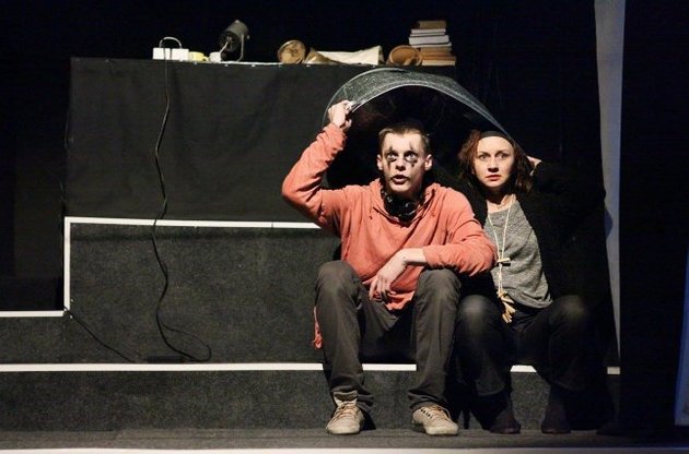 Темний зал на сто місць. Але глядачі сидять на сцені - там, де традиційно грають камерний репертуар. Художник Володимир Карашевський вивільняє колишню "тильну" частину цього простору. Відкриває пластикові вікна. Бо краєвид із вікон - теж частина сюжету.