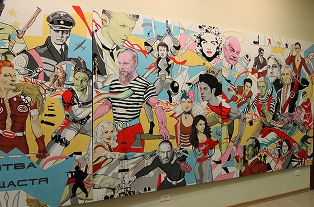Мабуть, найчіткіше артикульованим виявився спецпроект "Битва за щастя" у галереї NT-Art. Його автори - художники-подружжя Вадим (Bondero) Бондаренко та Ірина Бережко (Україна-Нідерланди). Наймасштабнішу роботу вони виконали спільно, поєднавши в одному просторі яскраво й активно проявлених популярних персонажів, від Альберта Ейнштейна до Олега Скрипки.