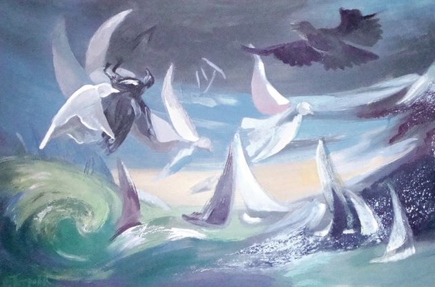На полотнах Ольги Петрової - темне низьке небо, шквальний вітер, штормове море, що майже зливається із землею. Вони переходять одне в одне, стають єдиним холодним мороком.. Ця виставка - насамперед стихія холодного, свинцевого кольору. Адже в роботах художниці колір є метою й водночас засобом у досягненні своїх задумів. Саме через колір, його емоційну наснаженість, вона передає свій настрій, думки, почуття і враження. Він створює свій особливий духовний простір, через який художниця передає своє особисте, суб'єктивне відчуття країни. Її норвезькі пейзажі - це пульсація кольору, кольорів чистих і відкритих. Треба мати певну сміливість, мужність, щоб працювати на такій напрузі емоційного сплеску, як це робить у своїй творчості Ольга Петрова. Спокійно проходити повз її полотна неможливо. Колір гіпнотизує, вабить і викликає відповідні почуття в глядача. На контрасті синього і білого побудовані роботи "Фіорд", "Легенда". Вони позначені трагічністю, самотністю існування людини, її постійною боротьбою зі стихією суворого моря, яке дає засоби до існування і яке несе рибалкам та морякам страшну, смертельну небезпеку. Мужні білі птахи, їхній динамічний злет у роботах "Над морем", "Ставангер. Ніч. Озеро".