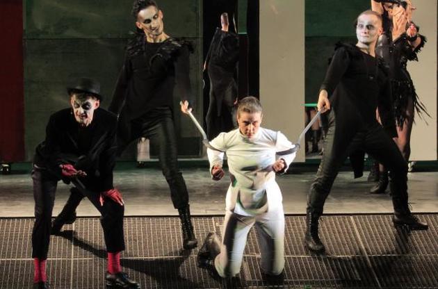 Разом із художником Володимиром Ковальчуком режисер розриває страдницькі алегоричні крила старої "Ворони", вивільняючи з популярної історії певний зухвалий новий зміст - саме для тих, хто очікував від дійства злободенної публіцистики, лобових алюзій із новим етапом боротьби за Свободу і Владу (тобто сценічних задників із документальними кадрами воєнних подій на Сході).