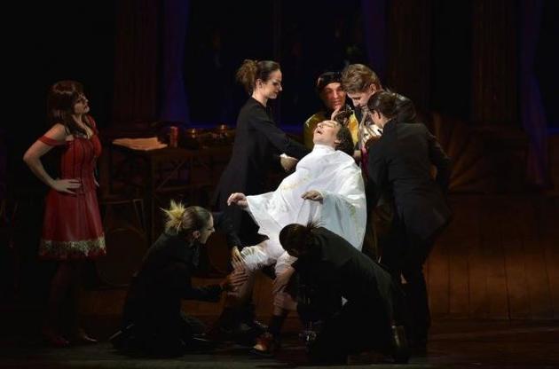 Бурхливому розгортанню сюжету сприяє дотепно задіяний кордебалет - восьмеро людей у чорному, які то на роликах, то пішки супроводжують розвиток колізій (хореограф Вадим Прокопенко).